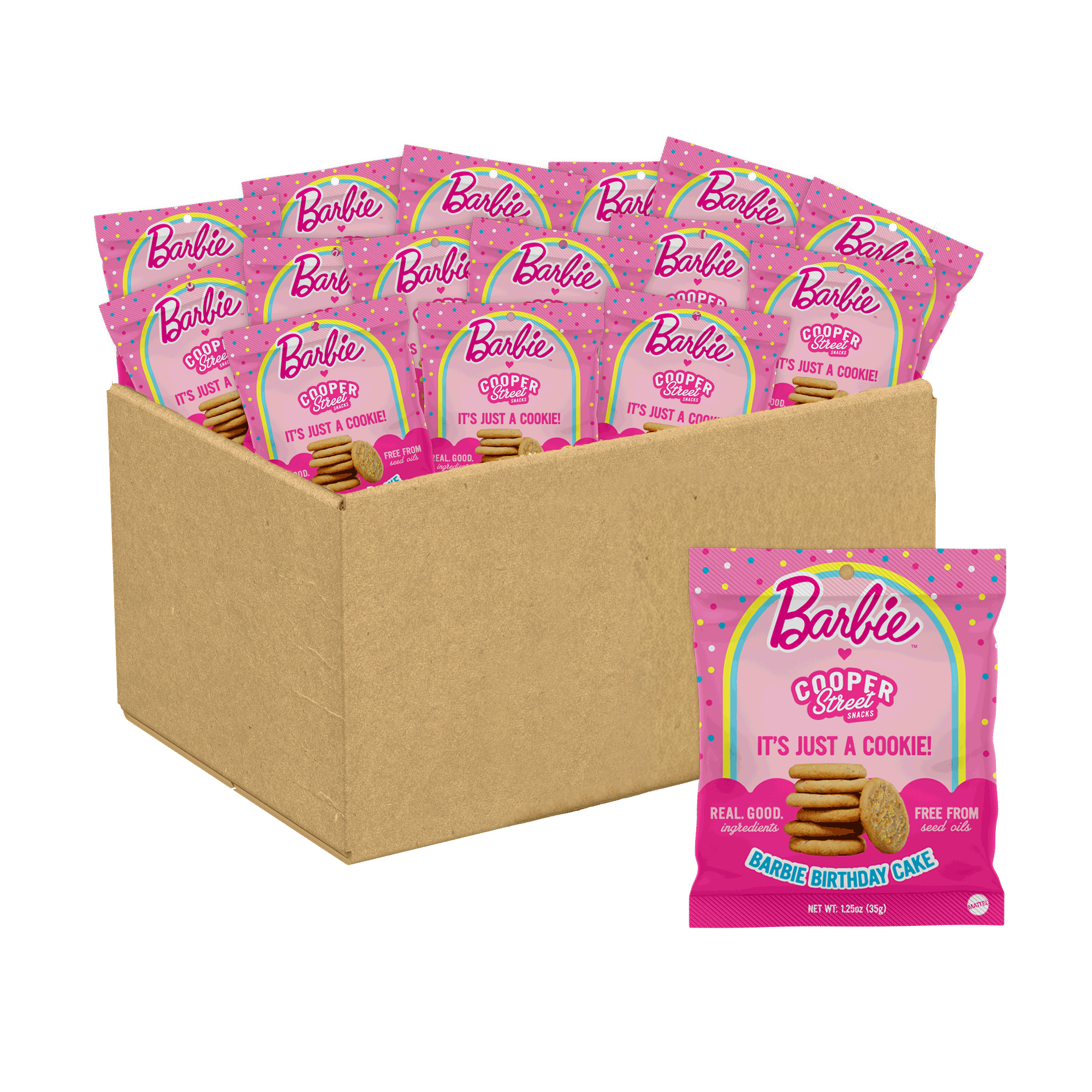 Celebrate the little moments with our Barbie™ Birthday Cake cookies! Bursting with sweet vanilla cake flavor and festive sprinkles, these crunchy cookies bring celebration to every bite. Crafted with real ingredients, they’re a fun, feel-good treat you can enjoy anytime – no special occasion required.